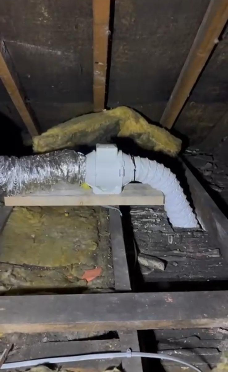 There is two types of fan I usually install, either a wall mounted unit or a in-line loft mounted fan. This loft mounted unit is always the one I’d recommend if it’s possible due the suction rate being more than double and it enables us to mount the vent directly above the shower head.
